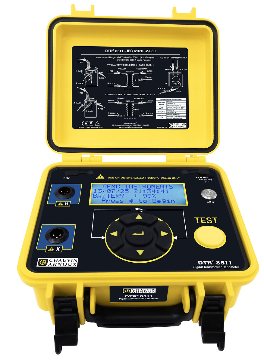 Kehitetty sekä kenttä- että laboratoriokäyttöön. IP53-luokitus kannen ollessa kiinni. Liitettynä jännitteettömään muuntajaan, DTR 8511 mittaa tarkasti ensiö-toisio -muuntosuhteen, osoittaen samanaikaisesti napaisuuden sekä mittausvirran.