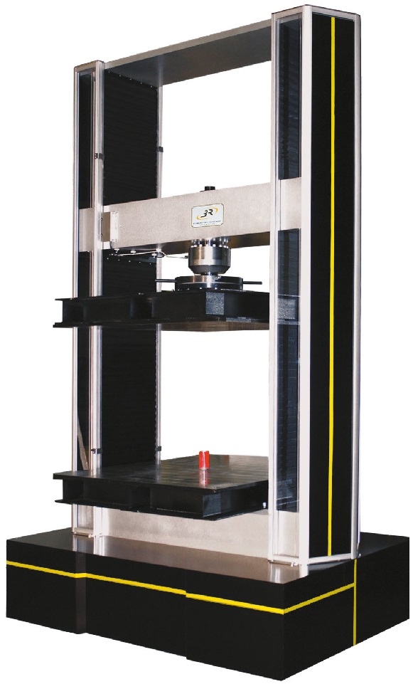 Vaakasuora testitila 1500 x 1500 mm, pystysuora iskunpituus 700 mm, uritetulla pöydällä ja punnituskennon